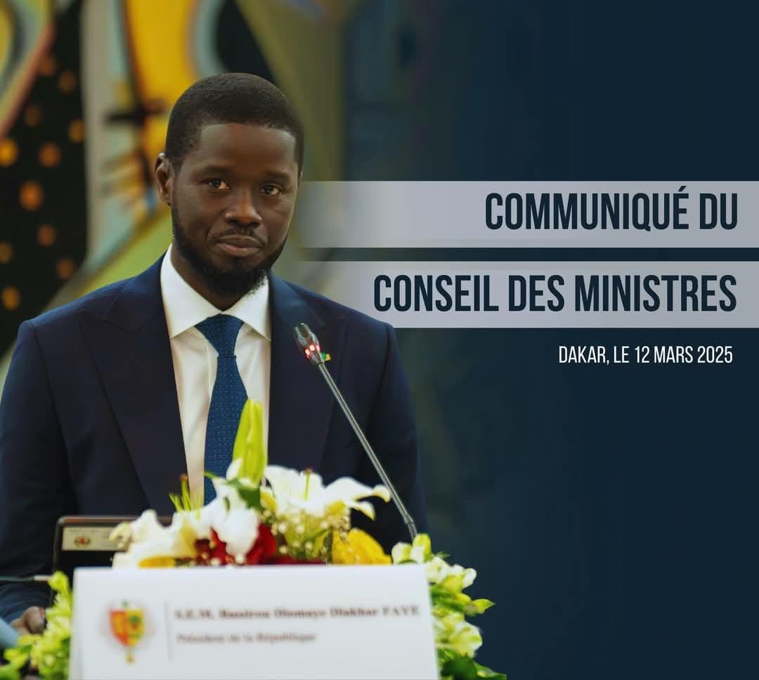 Le Chef de l’Etat, Son Excellence, Monsieur Bassirou Diomaye Diakhar FAYE a présidé, ce mercredi 12 mars 2025, la réunion hebdomadaire du Conseil des Ministres, au Palais de la République.
